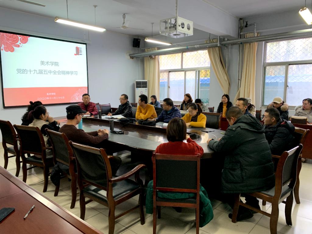 11月27日下午,bat365在线中国官网登录入口在会议室召开全体教师会议,集中学习党的十九届五中全会精神。