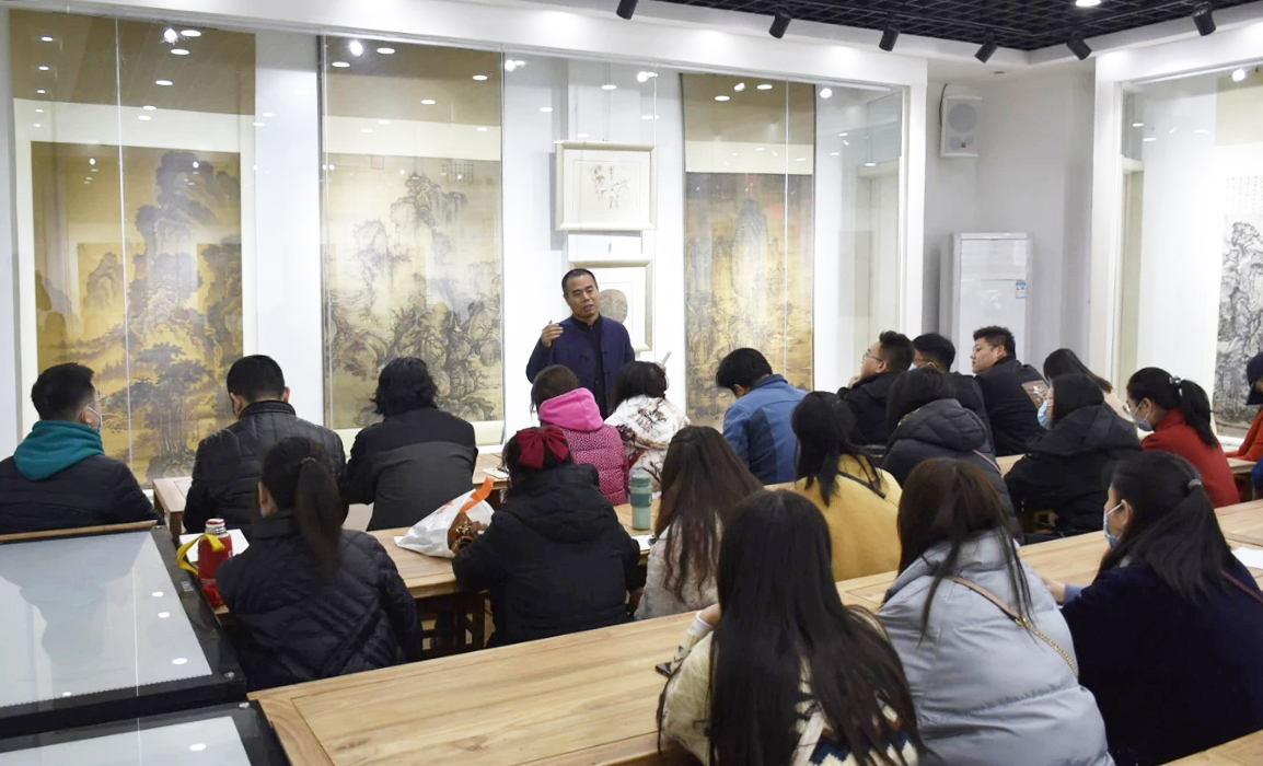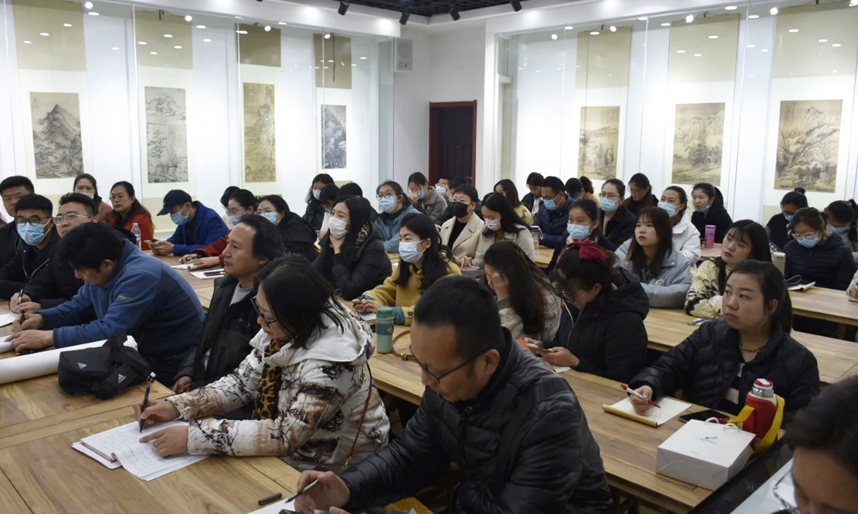 3月23日上午,bat365在线中国官网登录入口与德城区教研室在美术楼古画临摹室联合举办“德城区中小学美术教师国画素养培训会”,bat365在线中国官网登录入口副教授王玉民受邀作了《由中西美术对比看中国画的美学内涵》的专题讲座,并对教师的国画作品进行点评指导。全区中小学美术骨干教师共60人参加了此次培训。
