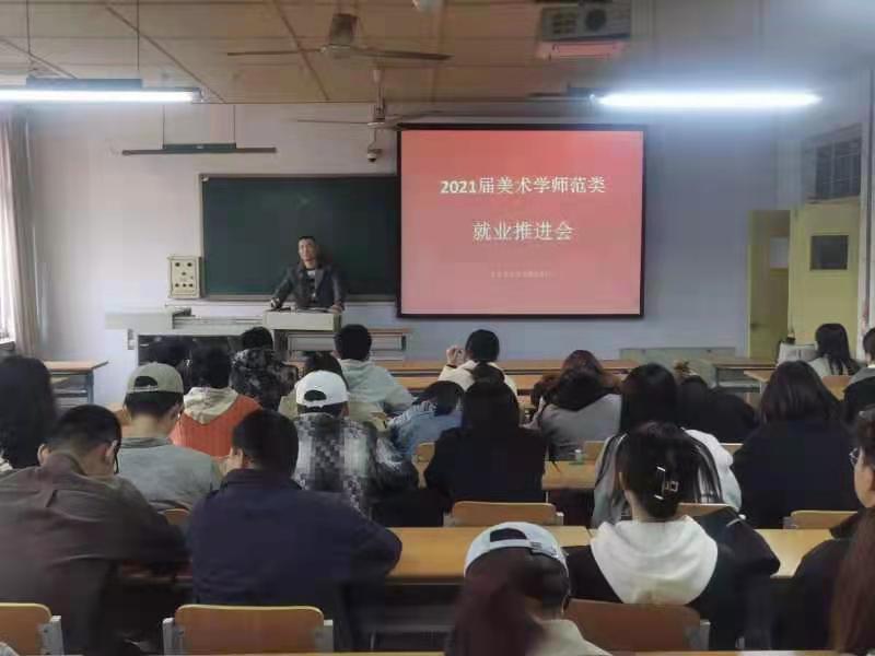 3月24日,bat365在线中国官网登录入口于弘艺楼305教室召开师范类毕业生就业推进会。2021届美术学同学参加了会议。