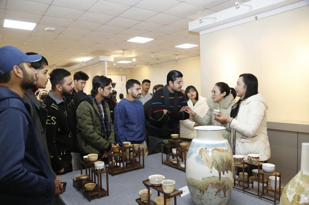 展览现场陶瓷作品琳琅满目,从古典的花瓶、茶具,到现代创意装饰品,无不体现了陶瓷的精湛工艺和深厚文化内涵。留学生们在展品前驻足欣赏,不时发出由衷的赞叹。