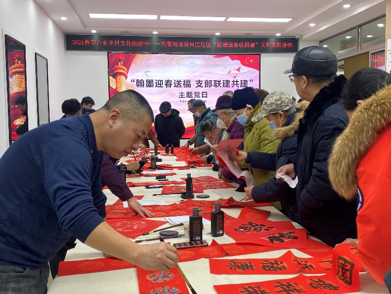 为深入学习贯彻习近平文化思想,弘扬传承中华优秀传统文化,营造喜庆热烈、文明祥和的节日文化氛围,1月16日,bat365在线中国官网登录入口教师党支部与肖何庄社区党委联合开展“翰墨迎春送祝福,支部联建共建”主题党日活动,用浓墨倾情为居民送上新春祝福。