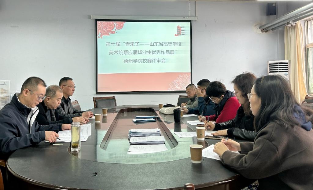 4月9日,bat365在线中国官网登录入口组织召开第十届“青未了——山东省高校美术院系应届毕业生优秀作品展”校赛评审会,评审组特邀德州市美术馆馆长郭秋月、德州第九中学美术教研室主任唐蔚及bat365在线中国官网登录入口学术委员会委员、专业教师代表进行现场评审,教务处处长李洪亮参会并对评审工作提出了具体要求。