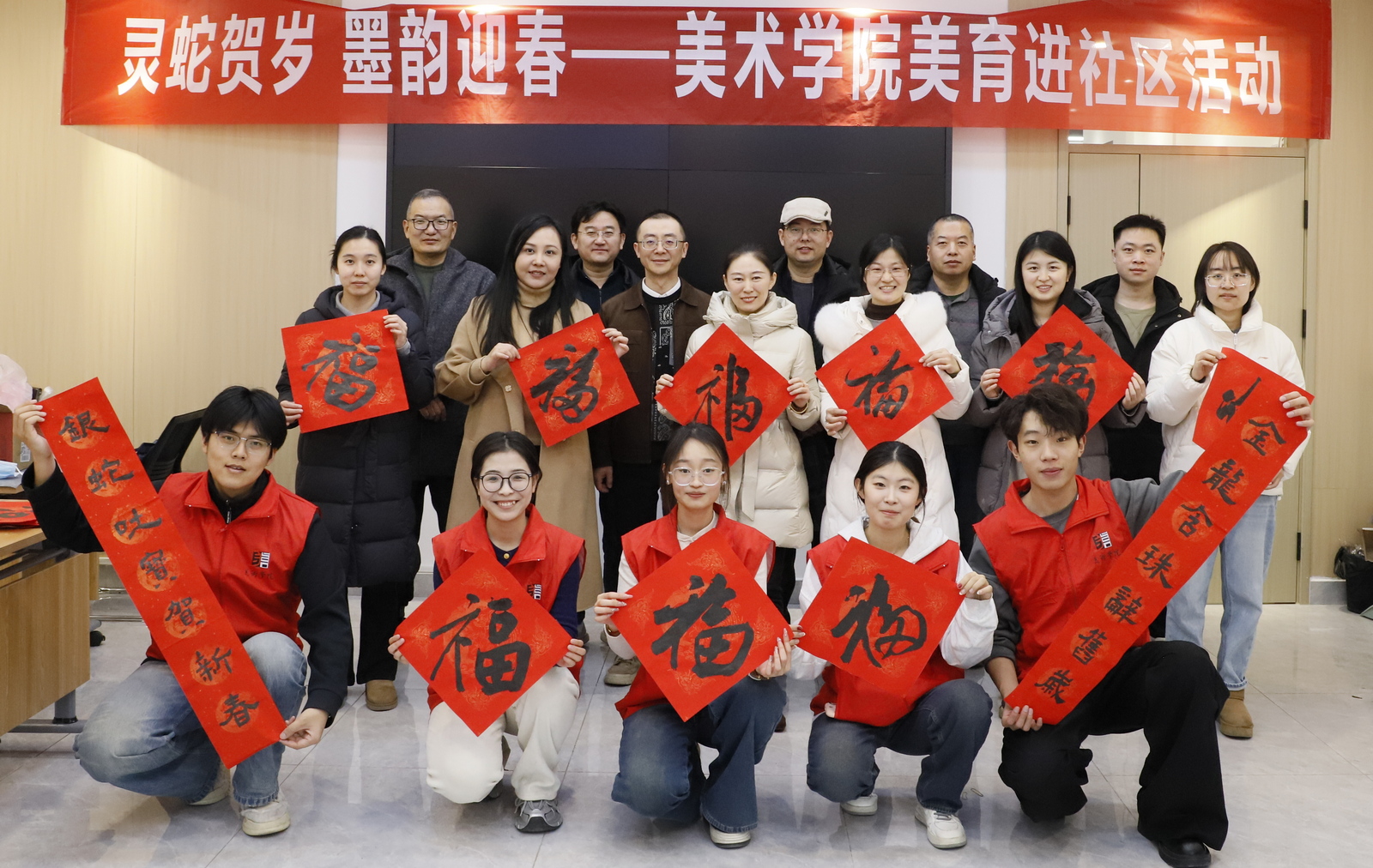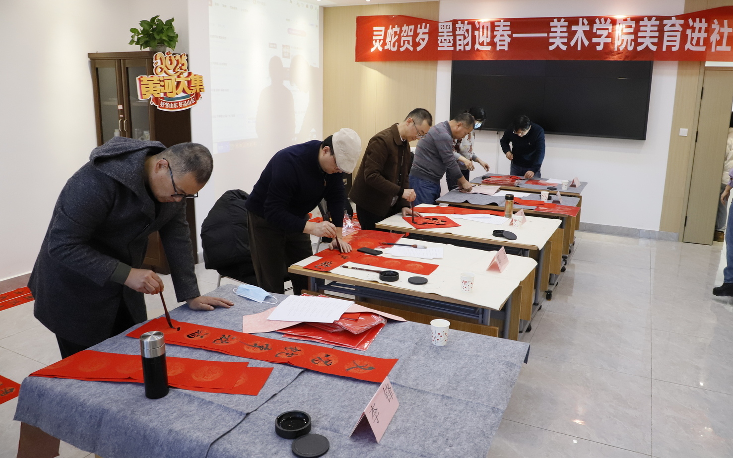 千门万户曈曈日,总把新桃换旧符。为传承和弘扬中华民族优秀传统文化,营造欢乐、喜庆、祥和的春节氛围,1月8日下午,bat365在线中国官网登录入口在德城区学府社区委员会会议室开展“灵蛇贺岁,墨韵迎春—美育进社区”为主题的送福送春联活动,以书写春联和“福”字为载体,将新春的祝福和美好的祝愿融入笔墨之间,为社区群众送去新春祝福。
