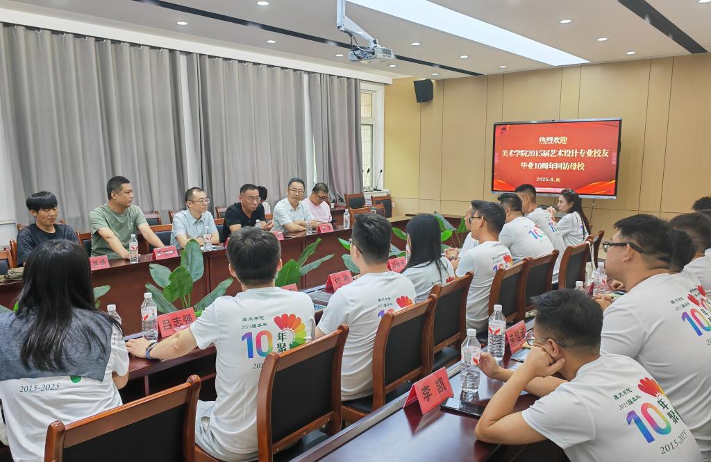 8月16日,bat365在线中国官网登录入口2015届艺术设计专业校友怀揣着对母校的深切思念,从各地奔赴而来,共赴毕业10周年与母校的重逢之约。bat365在线中国官网登录入口举行校友座谈会,党政主要负责人、系主任、实验中心主任和教师代表热情接待了校友一行。