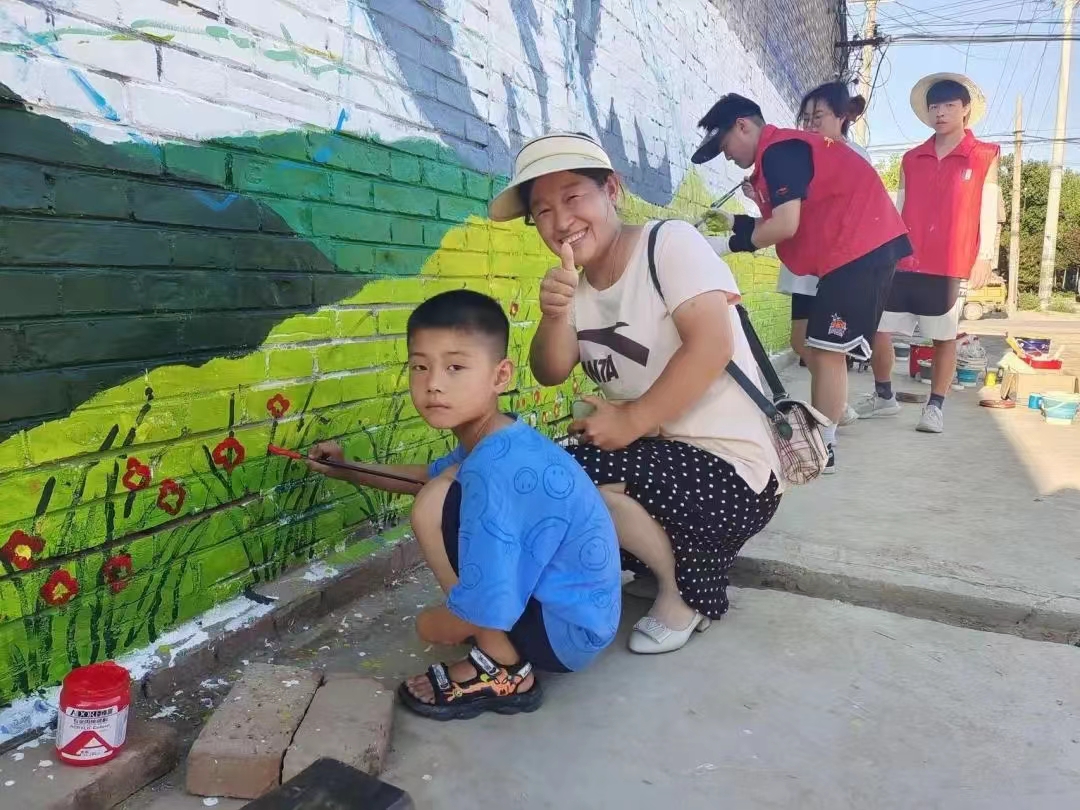 6月的盛夏,同学们从顶着“烈日”到伴着“月光”,他们热情高涨,构图打型、勾线上色、勾画细节、潜心创作,将“画纸”铺到了乡村居民的房屋外墙。以老百姓喜闻乐见的形式用生动形象的图画配以通俗易懂的文字,利用寸土空间将乡村墙面建设成当地文化教育的户外大课堂,以新颖、独特的方式践行社会主义核心价值观,携手乡亲共建文明乡村。既突出了文化氛围和道德内涵,也将农村最美的东西、农民向往的生活以优美的形式表现出来,深受人们喜爱。