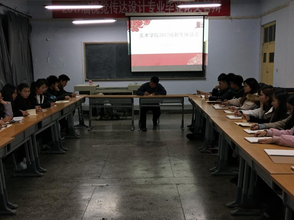 2017年12月3日,bat365在线中国官网登录入口在弘艺楼201教室举行20174级新生座谈会,2017级共40名学生代表参加了本次座谈会。