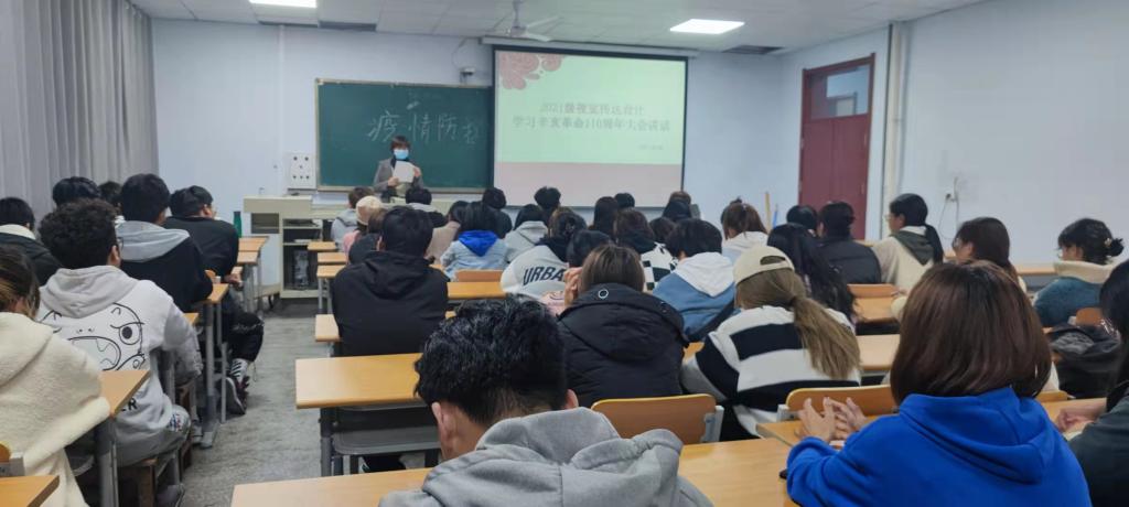 为了铭记先驱功勋,汲取奋进力量,激发同学们的爱国主义精神。2021年10月28日,bat365在线中国官网登录入口在弘艺楼201组织21级学生共同学习了“习近平总书记纪念辛亥革命110周年讲话”的内容。2021级全体同学参加了此次学习活动。