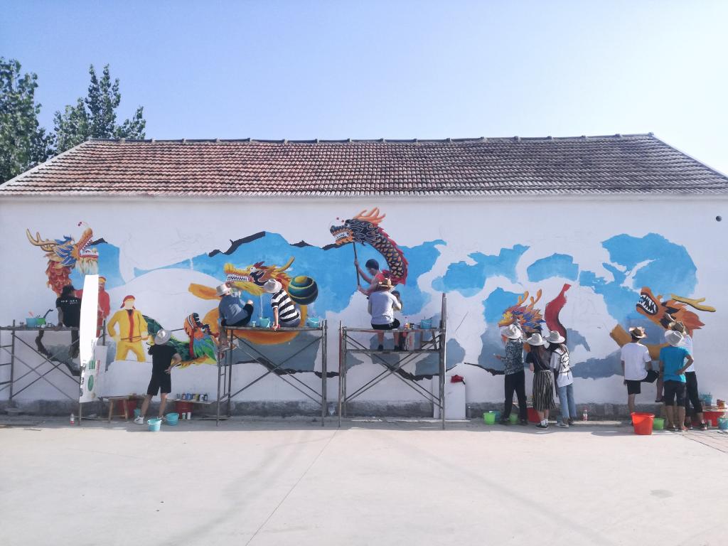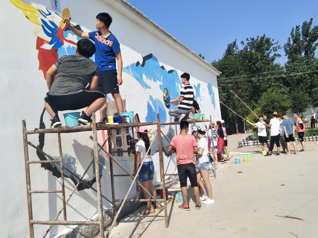 志愿者们在宋其勇老师的悉心指导下,以丙烯为主要绘画媒材,以展现中国梦和社会主义核心价值观内容为主要绘画题材,既美化了乡村街道,展现了生态宜居、乡风文明、生活富裕的美丽乡村图景,又将党的十九大精神以生动直观的形式融入到乡村生活中,丰富了老百姓的精神文化生活。