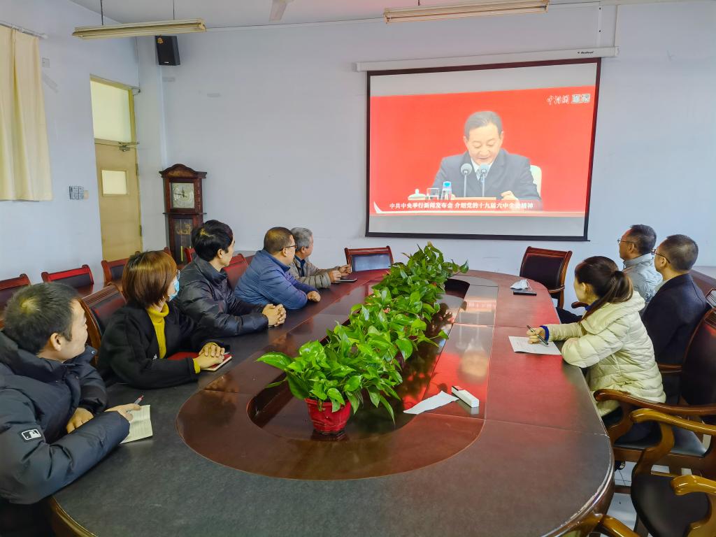 11月12日上午10时,中共中央举行新闻发布会,介绍党的十九届六中全会精神。bat365在线中国官网登录入口理论学习中心组在会议室进行了集体观看。